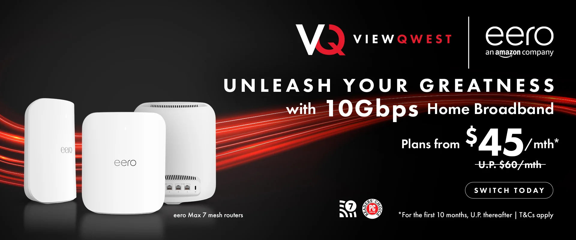 With ViewQwest X, leverage Singapore’s fastest and most secure broadband, offering speeds up to 10Gbps, paired with next-generation WiFi 7 devices. Enjoy seamless connectivity nationwide and elevate your online experience to new heights!