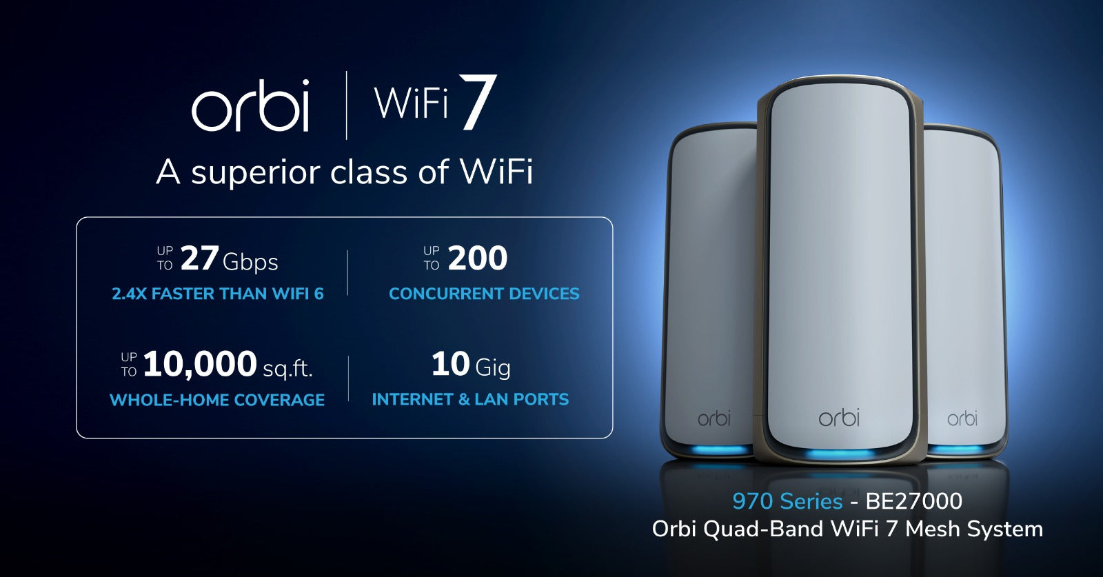 NETGEAR® Orbi RBE973 (BE27000) Quad-Band WiFi 7 Mesh - 3 node