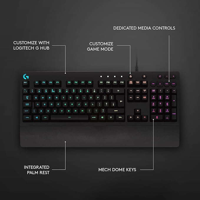 Elevate your gaming experience with the Logitech G213 Prodigy Gaming RGB Keyboard, engineered for high performance and style. With customizable RGB lighting and a range of gaming-focused features, this keyboard is designed to enhance your gaming setup and offer precision control during intense gaming sessions