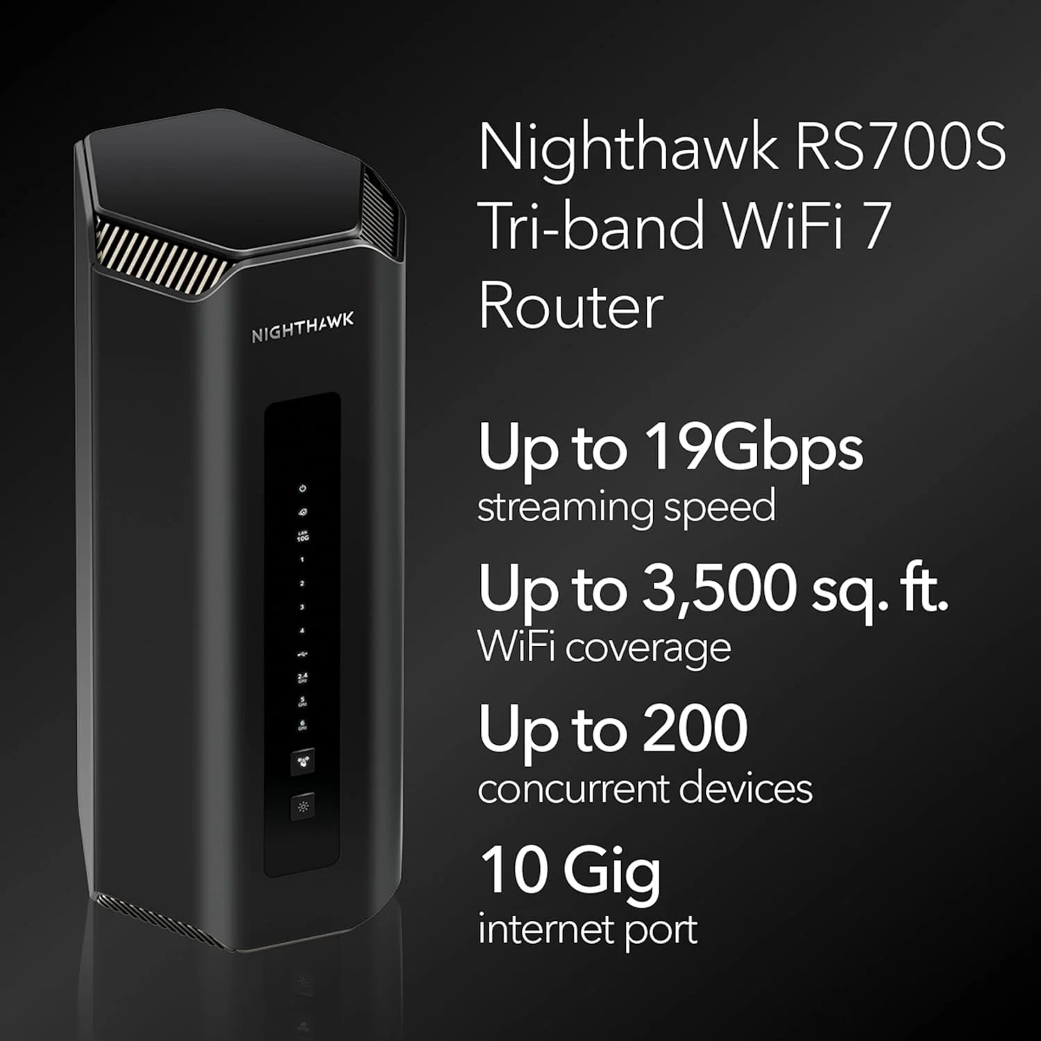The most powerful & advanced Nighthawk router ever. Unrivaled WiFi 7 speeds up to 19Gbps for real-timing gaming, 4K/8K streaming, UHD video conferencing, and AR/VR entertainment